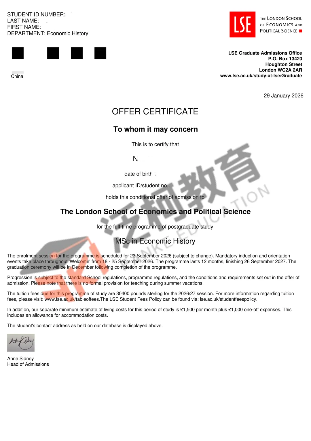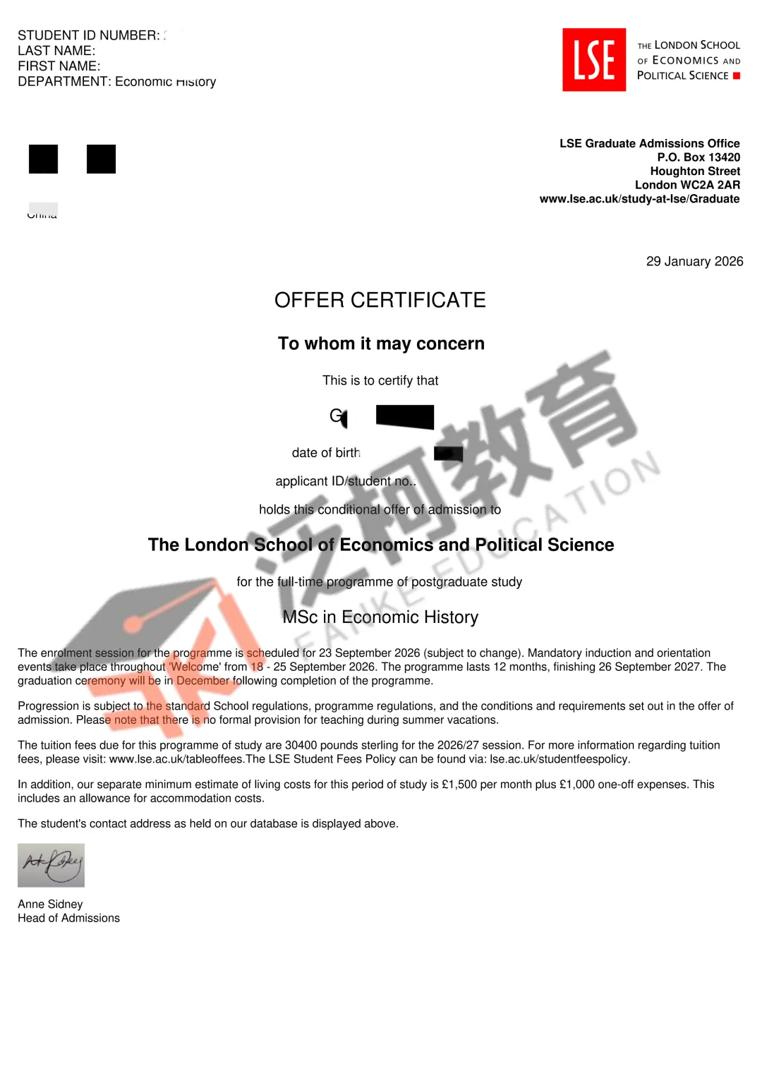 女神校Offer雨!LSE经济史连下三枚!恭喜经济经金学员!