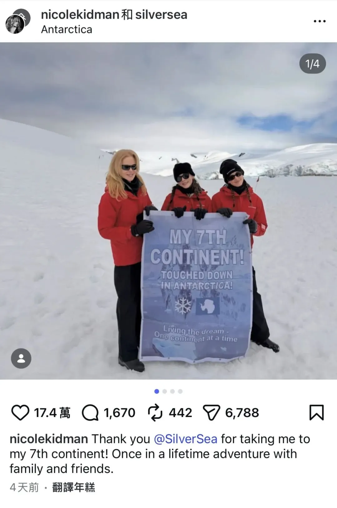 近日,好莱坞女星尼克·基德曼在社交媒体上晒出了其和两个女儿前往南极旅行的照片。尼克称这次旅行是“一生仅有一次的冒险”