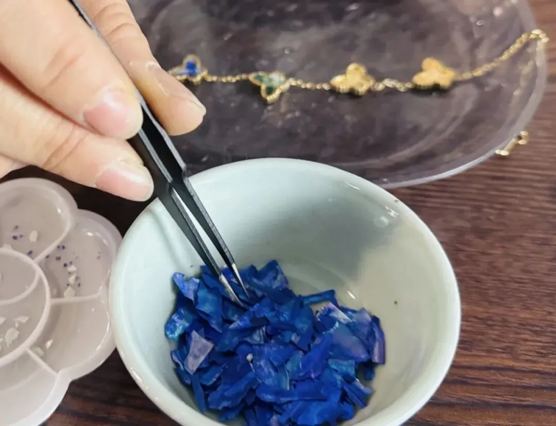 珍珠贝、夜光螺等天然海水贝母研磨成薄片,昔日帝王殿中珍宝,今成你掌心的浪漫诗行,非遗美学化身日常穿搭的点睛之笔。