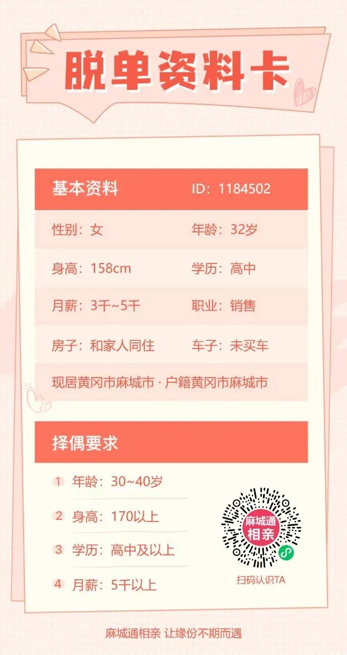 长按上方“麻城通相亲”识别小程序码,进入相亲交友页面,注册会员,添加详细资料,就能看到同样也在寻找爱情的那个他(她)哦!