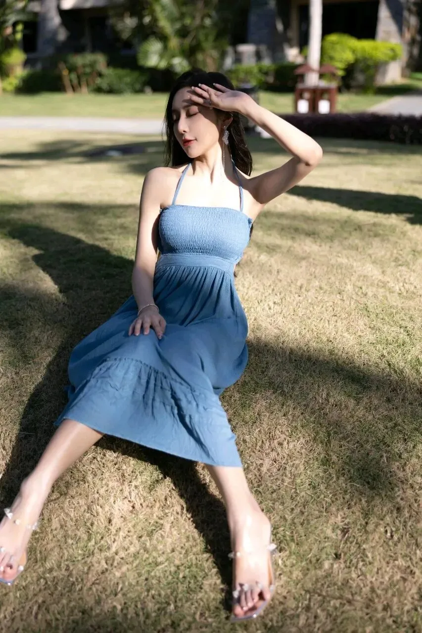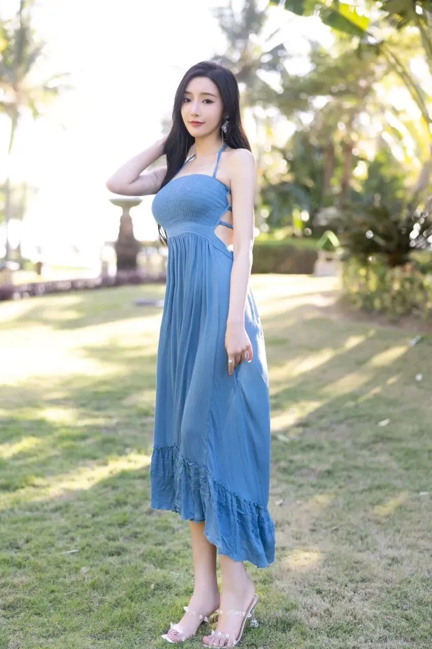 当前位置:首页>美女资讯>模特王馨瑶 蓝色吊带连衣裙搭配大长腿性感写真