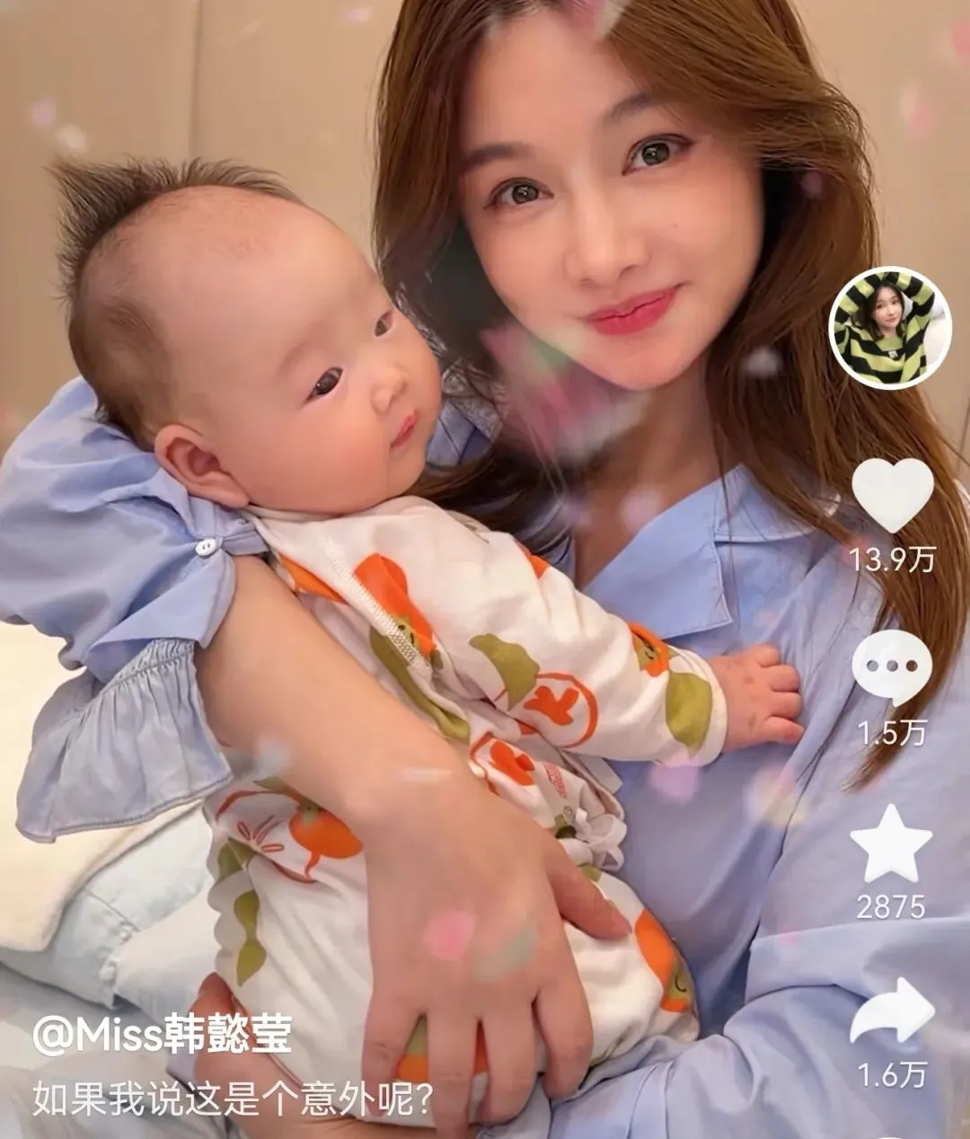 结果真的是个意外,只是Miss抱着别人的孩子而已,借来拍了个视频,逗逗粉丝,太调皮。看到视频中Miss对孩子那么亲昵,还贴贴脸和拍拍屁股,真以为是她的孩子,果真还是想多了。