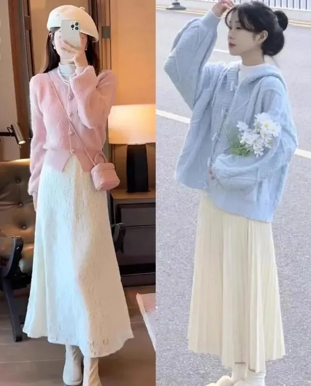 纯白衬衫、花瓣领、彼得潘领 , 随便哪种跟针织马甲搭都好看。 下面配针织裙、百褶裙或者羊毛裙 , 学院感和女人味同时拉满。