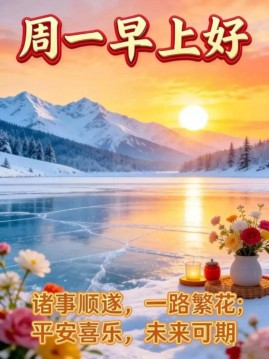 昨天的疲惫已打烊,像花儿合拢花瓣;今天的希望正营业,像太阳张开笑脸;此刻的祝福已送达,像暖流包裹心田。愿好运与你撞个满怀,周一吉祥!
