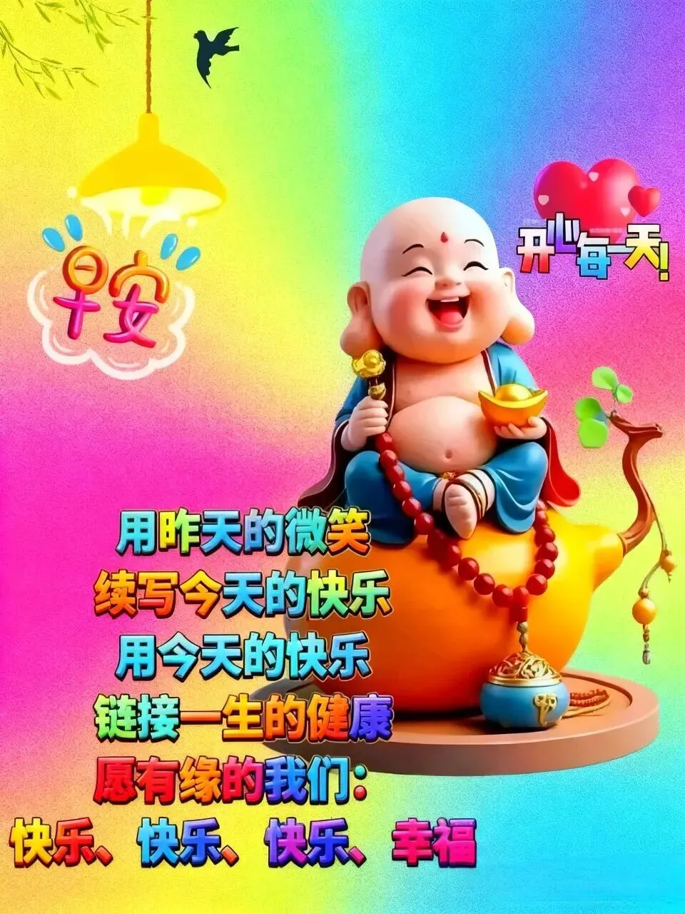 情谊没有时间差,问候说明在牵挂;祝福不分早中晚,心诚点亮你我他;富贵未必人生美,健康才是大赢家,新周愉快!早安!
