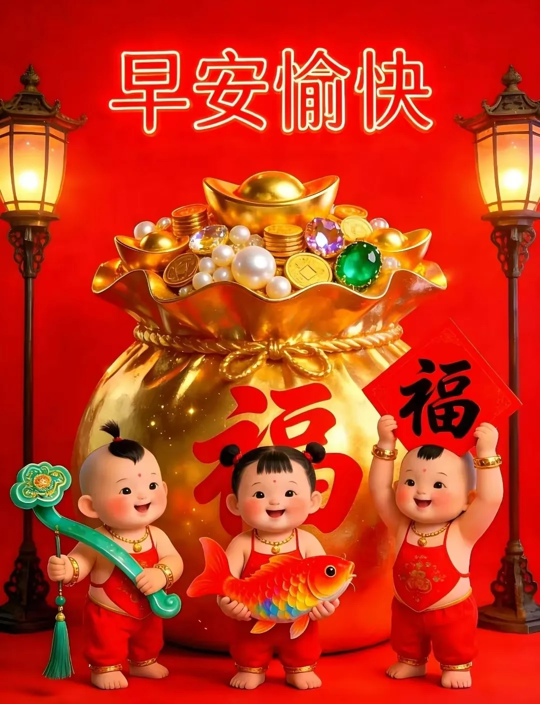 早有朝气,午有人气,晚有和气,常有喜气。愿我们每天都有好运气,一生都有好福气!早安!