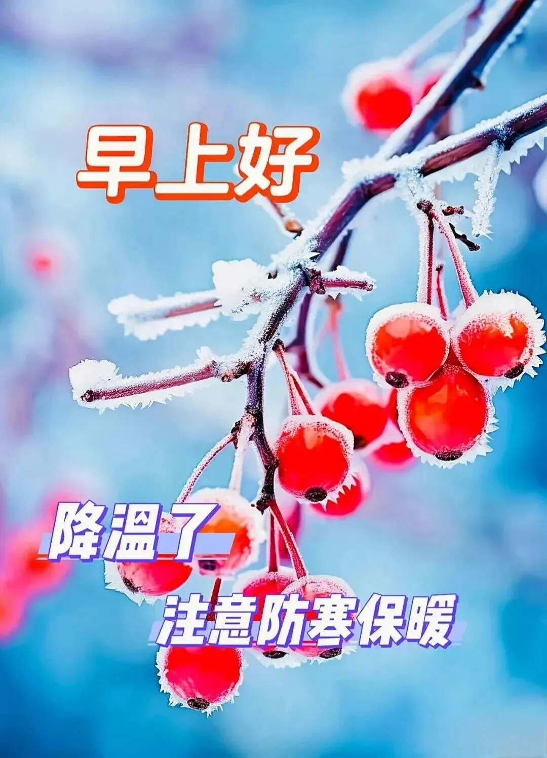 3.🌅送一片真情,给你保暖;🌈道一声问候,为你抗寒;🌷用一个祝愿,温暖心田;💓祈一份福音,愿你健康。🍎早安!🌺