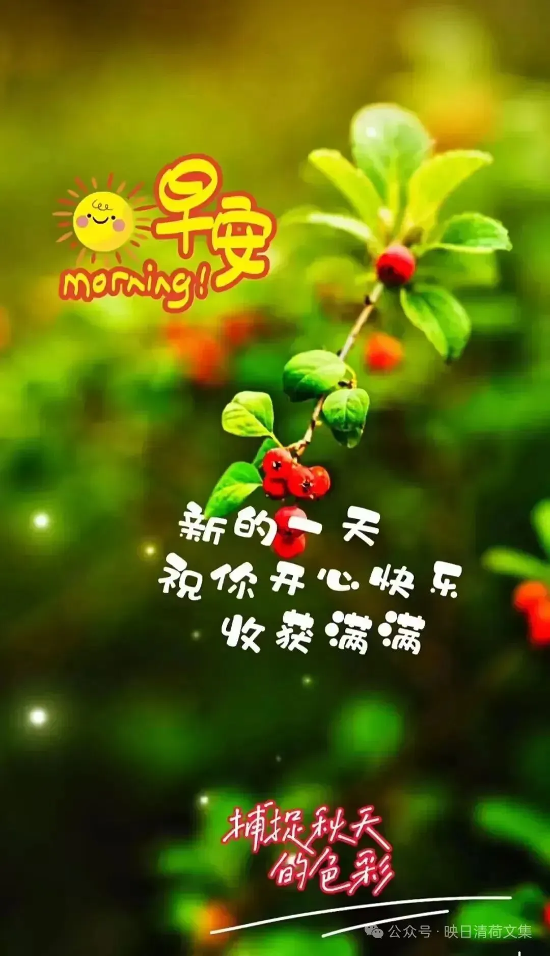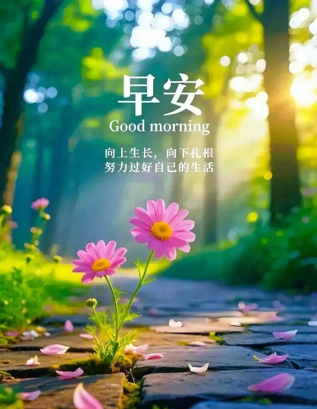 4.早安!昨天的一切已成为过去,今天的生活正式开启!迎接崭新的一天,在这美好的时刻,送上温馨的祝福,寄去暖心的问候,愿大家在新的一天:顺顺利利,喜乐无忧;平平安安,健康相伴!早安!