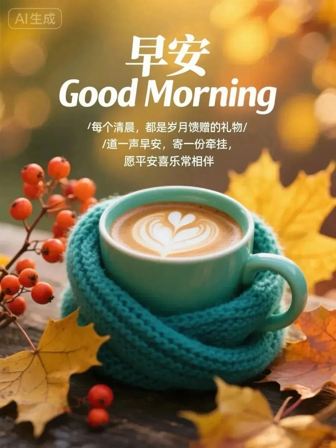7.凉凉的早晨,暖暖的问候;满满的牵挂,深深的祝福!新的一天,祝你平安喜乐添健康,开心如意常吉祥!愿十一月的你,好运常相伴,幸福天天见!收获满满,好运连连,你我好安,一切顺利!
