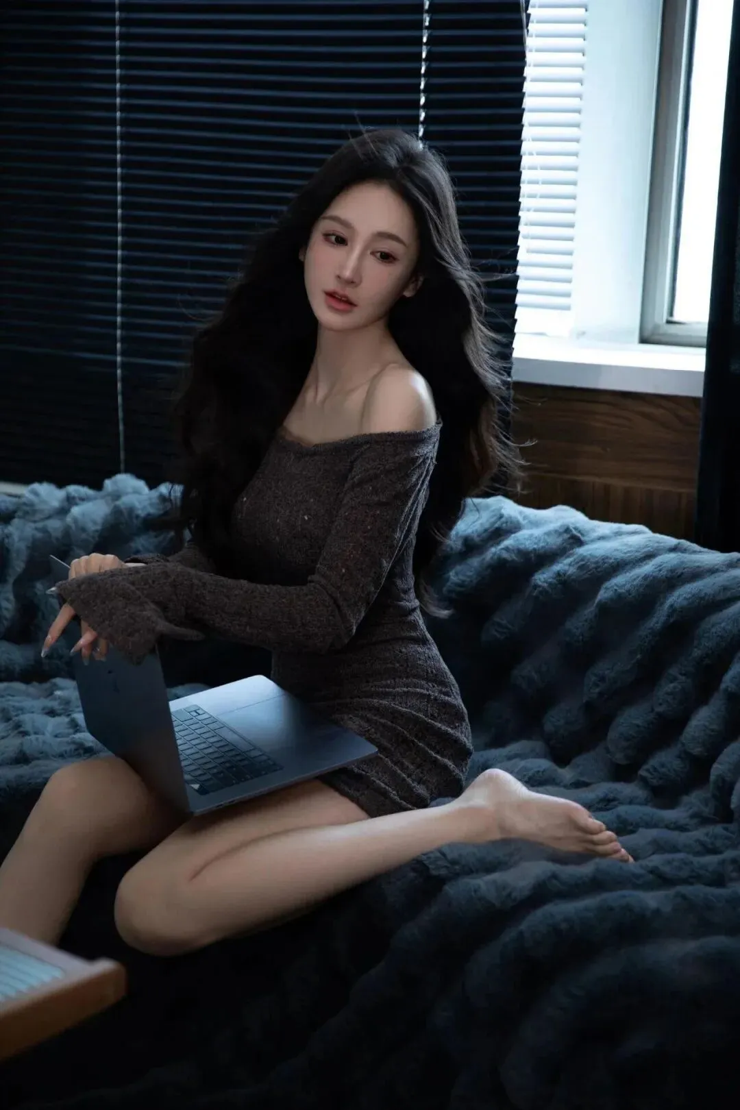 道具:笔记本电脑、毛绒毯、抱枕是核心道具,让模特真的去摸电脑、裹毯子、抱抱枕,动作会更自然不僵硬;光线不足时用小型补光灯,给面部补一点柔光即可。