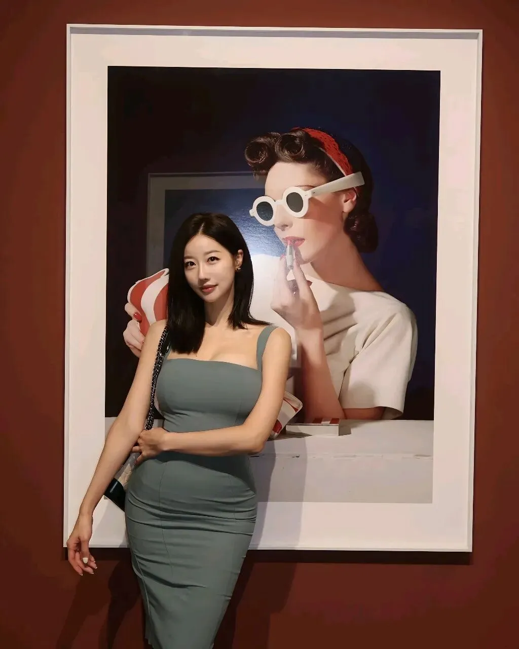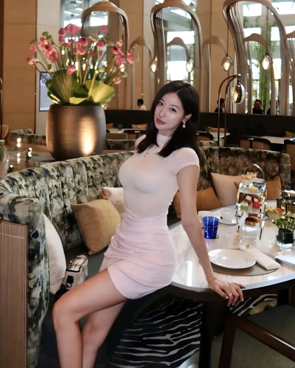 她的美,不是那种具有攻击性的惊艳,而是像水一样,缓缓地浸润你的心。她的眼神清澈,笑容干净,即使穿着略显性感的修身裙,也不会让人觉得低俗,反而因为她身上那种纯真的气质,让性感变得高级而优雅。