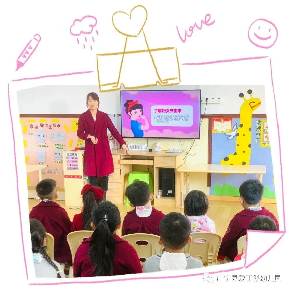 首先,老师们通过PPT、视频、故事等方式向孩子们讲解了“三八妇女节“的由来。