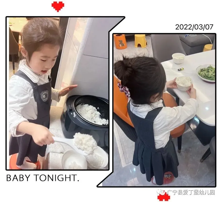千句万句的感谢,不如付诸行动,孩子们在家里给妈妈端茶、洗菜、煮饭;帮奶奶盛饭,饭后洗碗、擦桌、扫地......帮女神们分担一些力所能及的家务,用行动告诉自己的女神,您辛苦啦,我爱您!