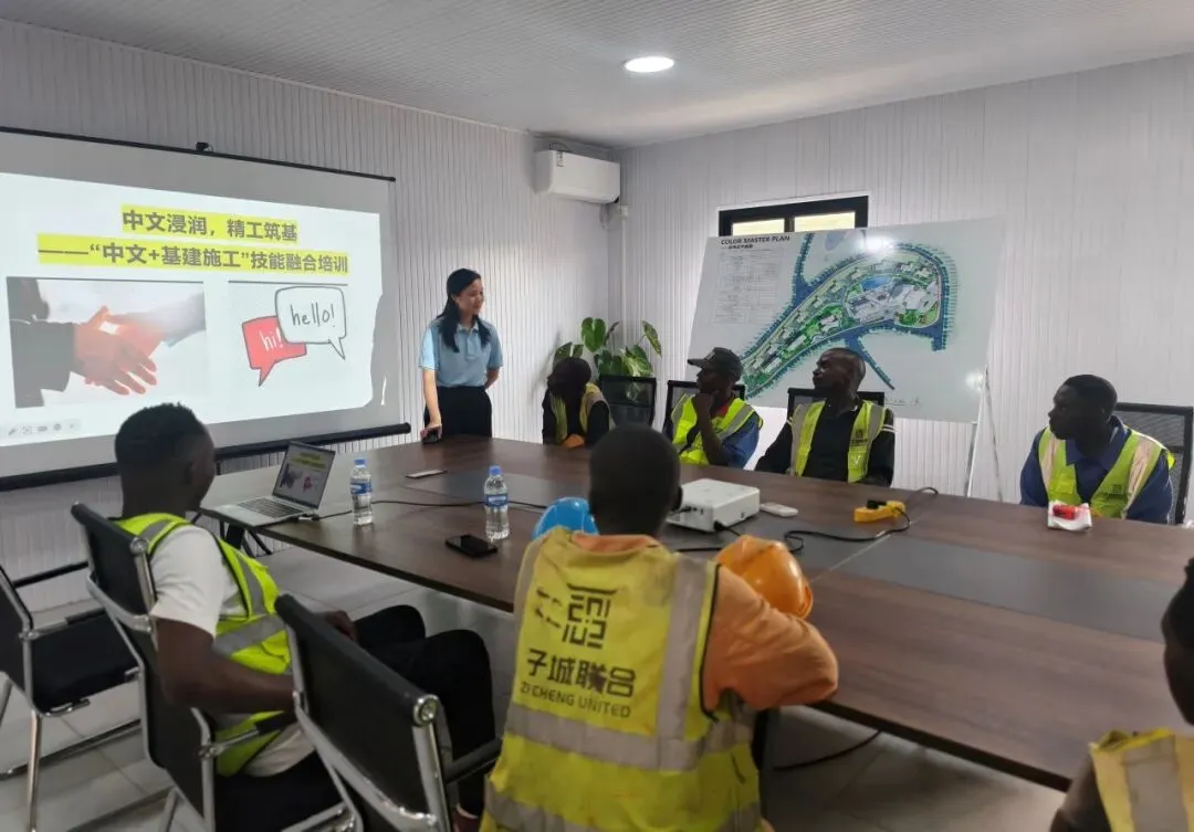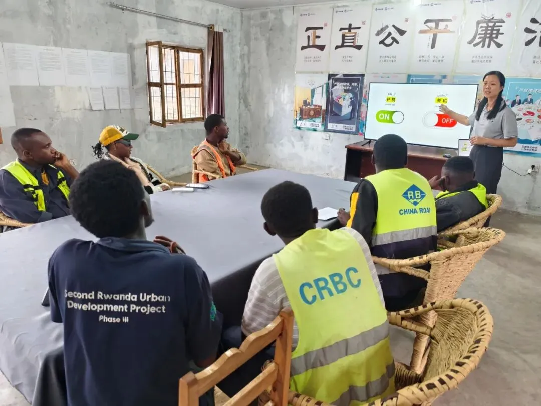 在卢旺达期间,倪柳老师还跟随团队深入子城联合建设集团、中国土木工程集团、中国路桥工程有限责任公司等在卢中资企业项目现场,通过实地考察与访谈,精准把握企业对员工汉语能力的实际需求,量身定制“中文+职业技能”专项培训内容。从日常沟通用语到岗位必备专业术语,再到中国企业文化认知,她以现场教学为抓手,帮助当地员工破解跨文化沟通障碍,为中资企业海外项目的顺利推进注入教育力量。