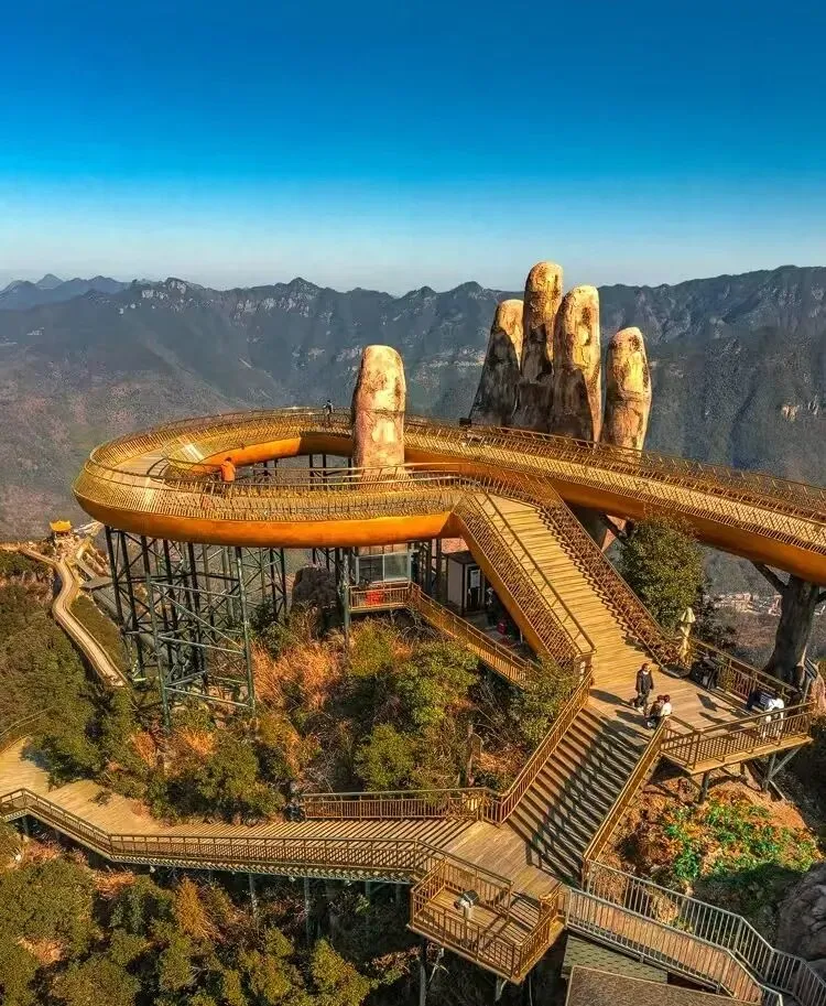 一双巨大的手,拖起金色的桥