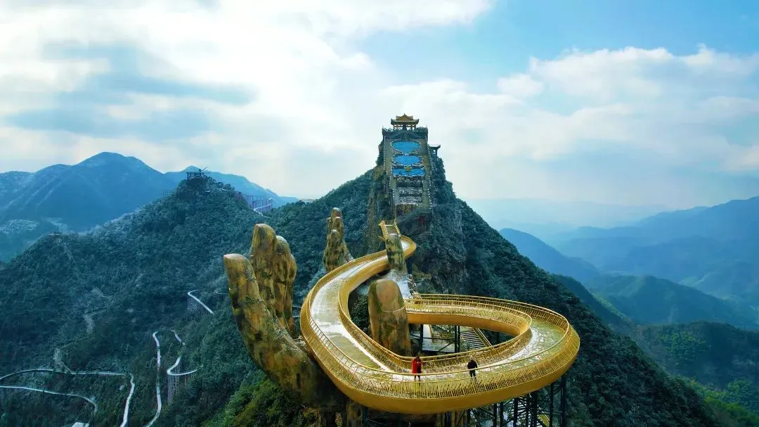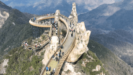 山很高,但是我们有飞天魔毯,全程5段魔毯,轻松登顶佛手桥!