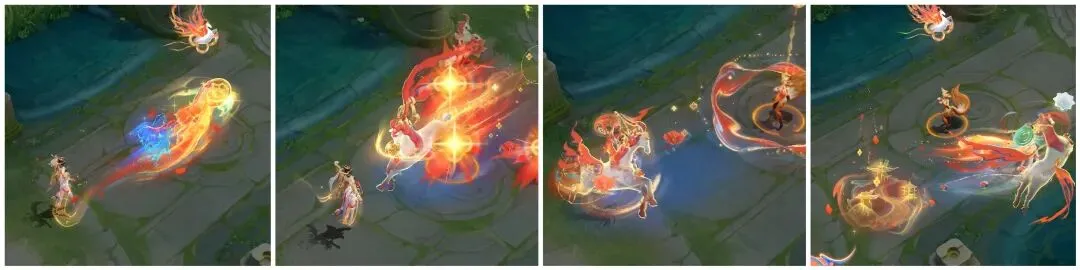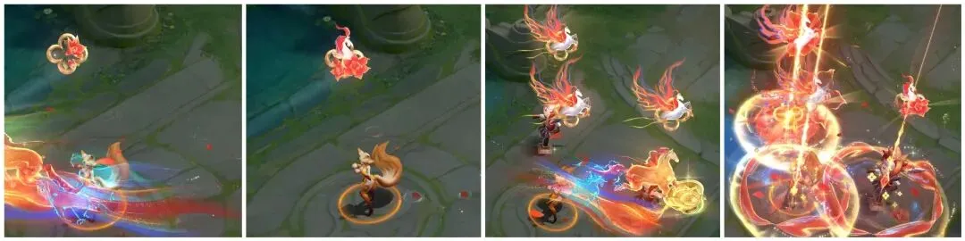 大招是有多种表现,首先,是释放时,5种颜色的神骥会奔向中心处,既符合马年背景,也展现出了长安万国来朝的盛世景象。