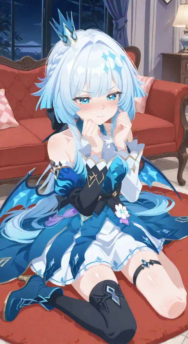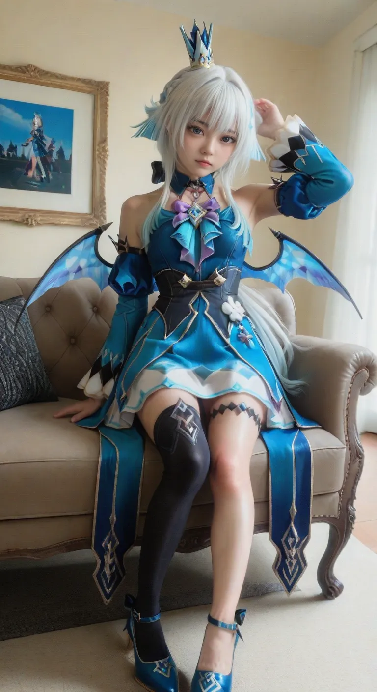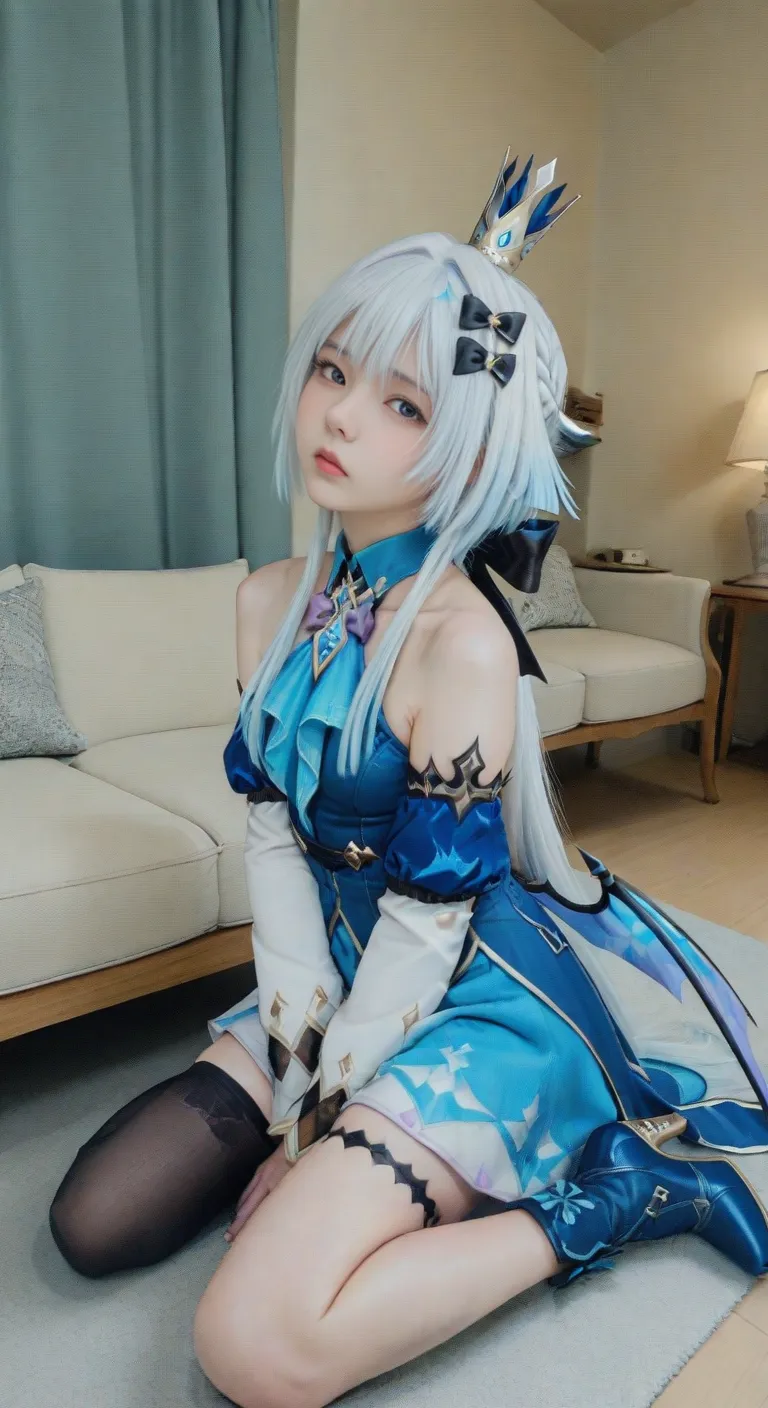 今天,我告诉刻律德菈我要帮她拍一套写真集。当时她正坐在客厅的地毯上,面前摆着一副不知已经是第几百次复盘的国际象棋残局。听到我的提议,她捏着那枚王后的手停顿了一下,并没有像普通女孩那样表现出羞涩,而是缓缓抬起头,那双有着菱形瞳孔的青色眼眸里闪过一丝审视战局般的锐利。随后,她嘴角扬起一抹属于统领的自信弧度,将棋子重重地落在棋盘上。