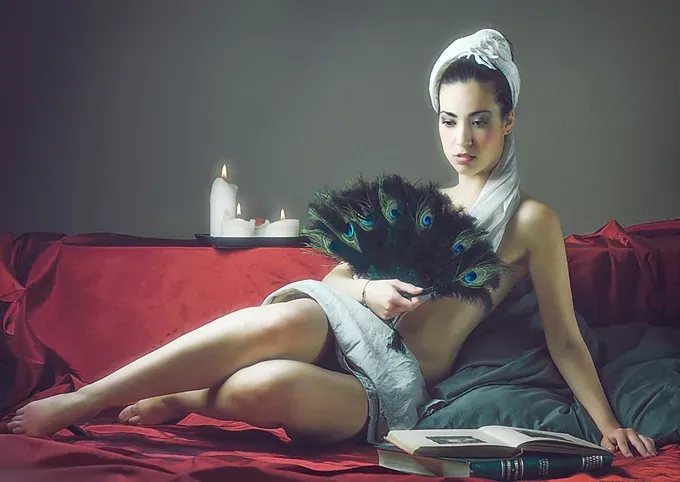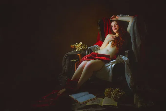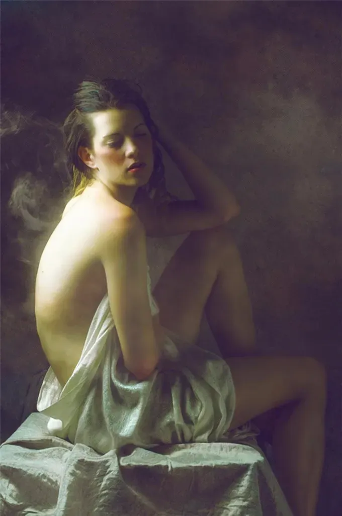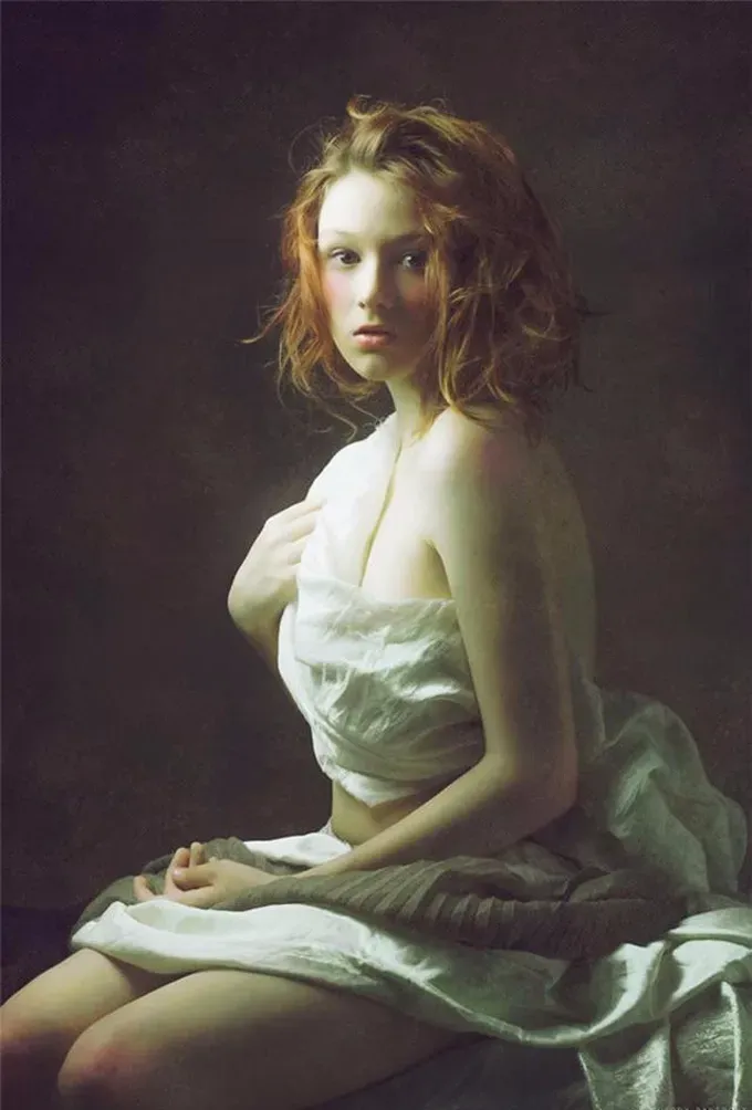 他镜头下的女性,不再是消费主义或流行文化的载体。她们或垂眸沉思,或恬静遥望,姿态自然舒展,情感含蓄内敛。那份“些许的性感”来自肌肤真实的光泽与身体自在的曲线,而非刻意的挑逗;那份“趣味十足”源于场景中精心安排却毫不突兀的古典元素(如织物、石膏像、旧书)所引发的历史联想与叙事悬念。他展现的,是一种根植于从容与自信的“优雅”,一种源自内心宁谧的“温柔”。这种美不喧嚣、不迎合,它邀请观者停下脚步,进行一场安静的、尊重的对视。