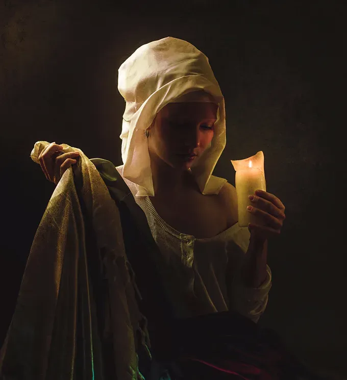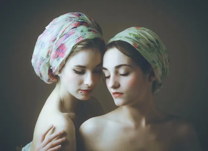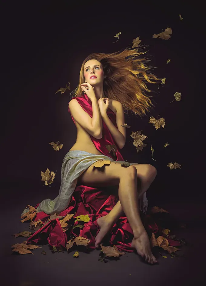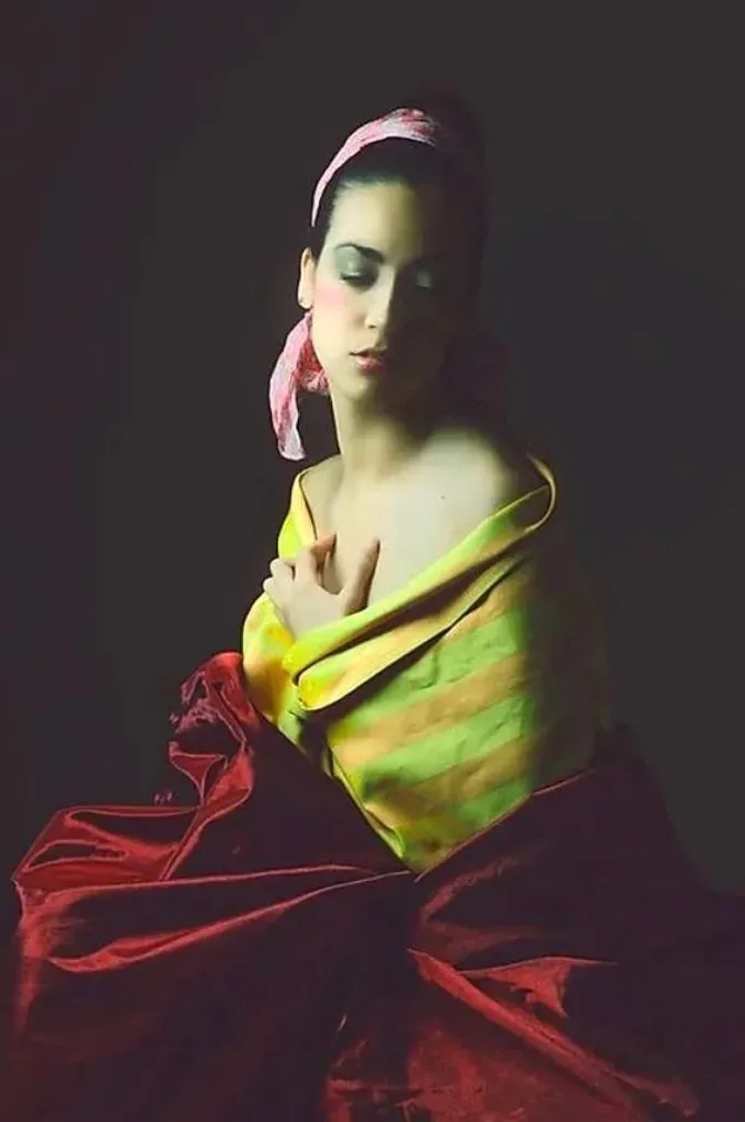 他精心布设光线,使其如文艺复兴大师笔下那般,柔和地流淌过模特的面庞与身躯,勾勒出细腻的轮廓,在肌肤上产生如珍珠般温润的过渡。他摒弃了时尚摄影中常见的强烈对比与硬朗线条,转而运用近乎伦勃朗式的“聚光”或维米尔式的“窗光”,让主体从深邃柔和的背景中浮现,充满体积感与神圣感。色彩在他的画面中是克制而高雅的,常以低饱和的暖棕、象牙白、灰蓝为主调,宛如历经岁月洗礼的古典画作,褪去了浮华,只余本质的和谐与温柔。