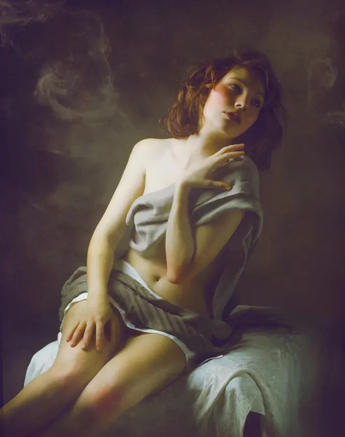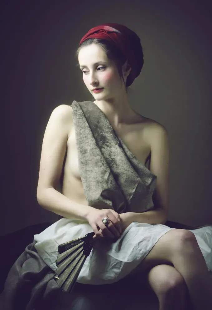 班斯朗作品的魔力,最终凝结于他对人物情绪的精准把握与故事画场景的卓越营造。他不仅是记录容貌,更是捕捉灵魂的瞬间状态——那一抹淡淡的忧郁,一丝出神的向往,一股沉静的力量。他擅长将人物置于一个充满暗示性的、宛如舞台的简约空间中,借助道具、光影和模特自身的姿态,构建出一个未竟的故事开头。观者仿佛闯入了一幅正在进行的古典叙事画的某个静谧片刻,可以无限遐想前因后果。正是这种将摄影的即时性与绘画的永恒性、戏剧的叙事性完美融合的能力,令他的作品形成了“独一无二的风格”。