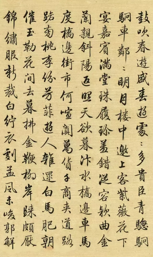 今天我们来欣赏梁诗正小行书佳作《跋仇英清明上河图》
