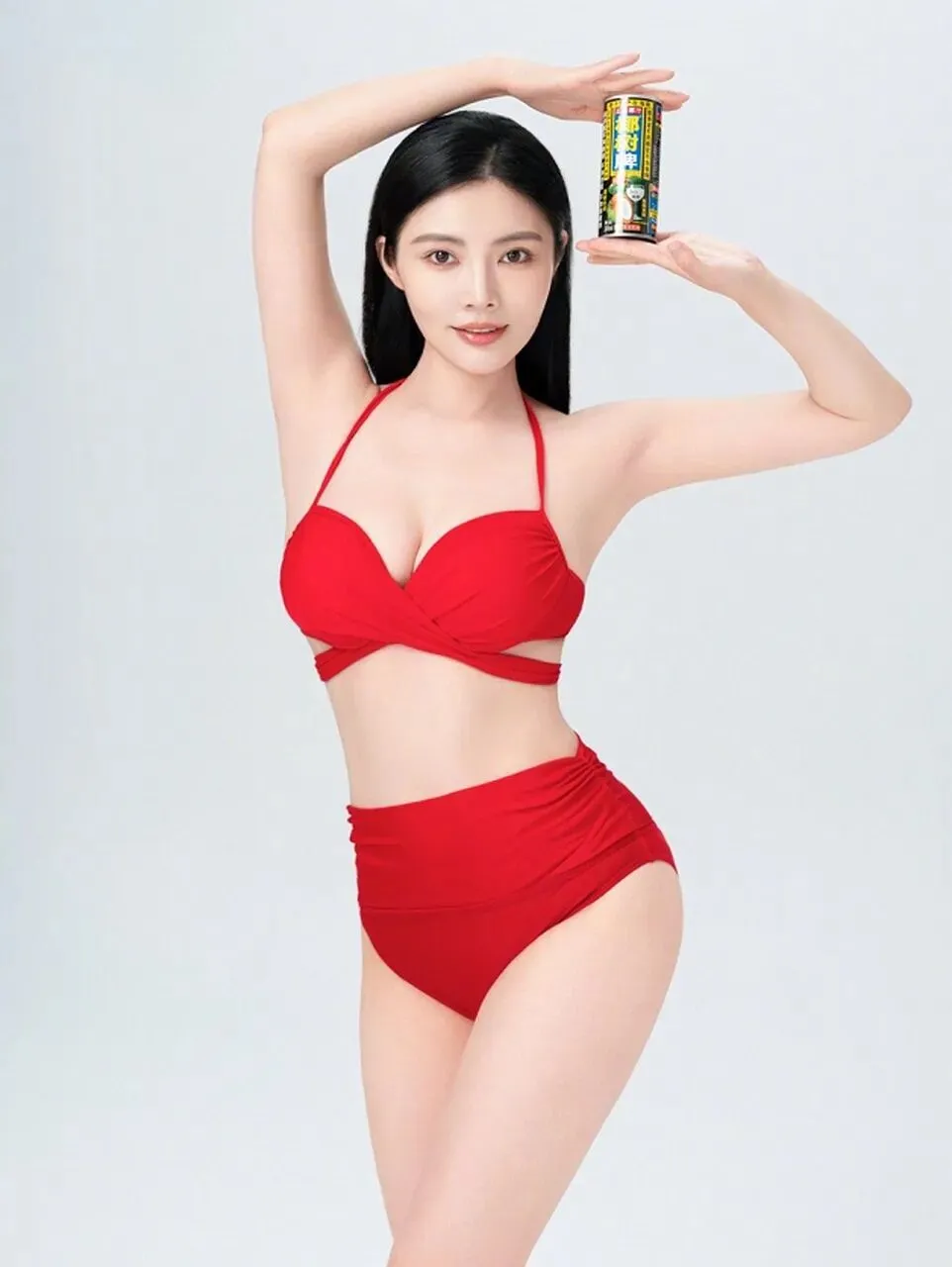 徐冬冬身为椰树牌椰汁的代言人,她穿着红色比基尼的泳装,高举着椰汁,大秀自己凹凸有致的魔鬼身材,绝对性感火辣!