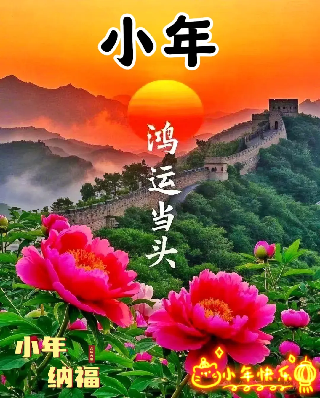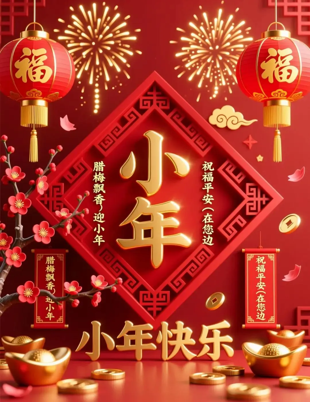 🙌👨‍👩‍👧‍👦💕 恭祝你:大事小事事事顺心🙌,大家小家家家团圆👨‍👩‍👧‍👦,大爱小爱爱爱相连💕,大步小步步步高升📈,大财小财财财不断💰,大路小路路路畅通🚗,大年小年年年幸福🥰,小年安康!🥳💝🌟