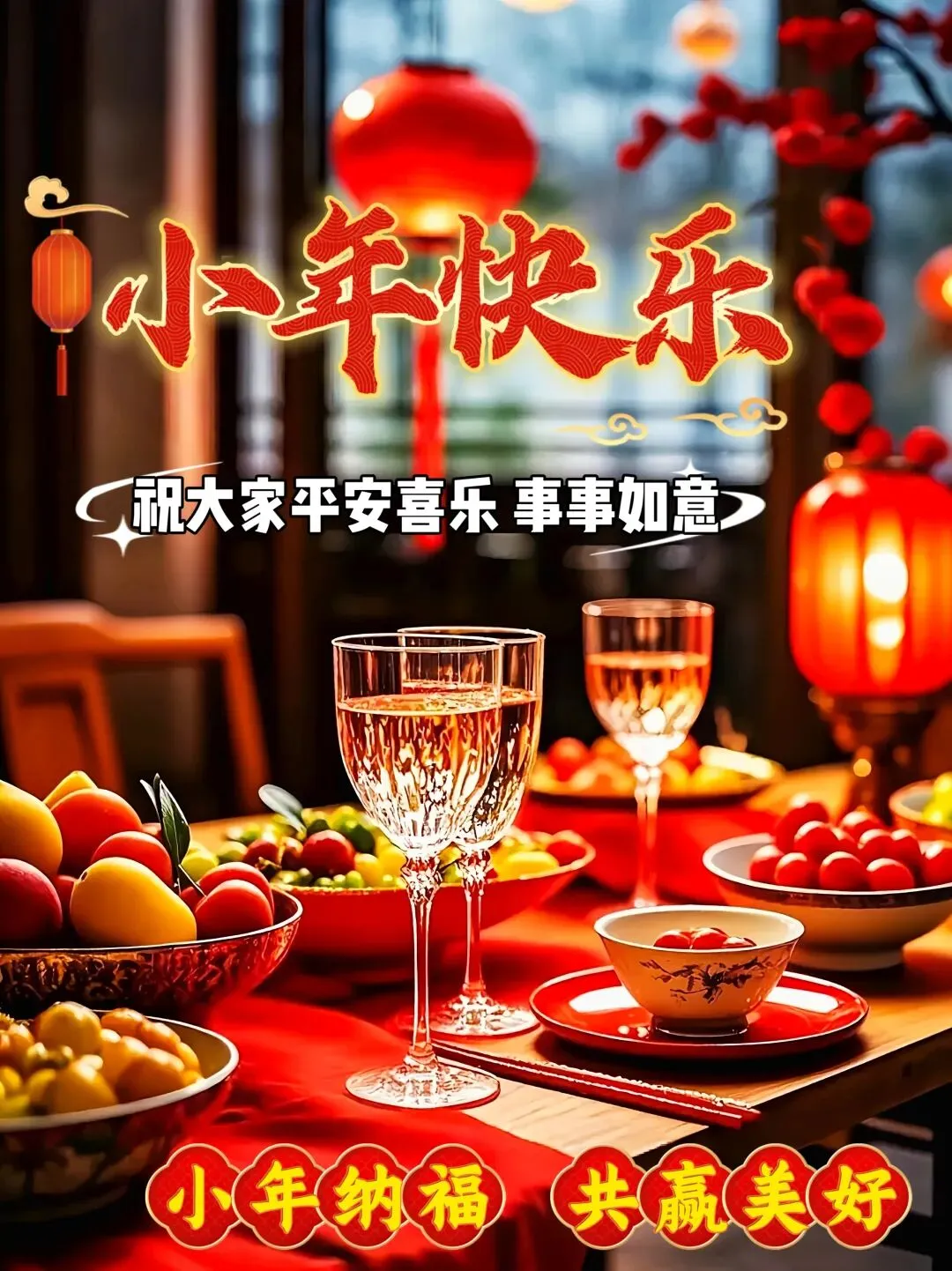 🧨🍷💕 小年来到,祝福要早🧨,斟上一杯幸福酒🍷,送上一句幸福话🎙️,捧着一颗幸福心💕,愿你新年快快乐乐😄、开开心心😄、幸幸福福🥰、甜甜美美🍬、健健康康💪,事事皆顺意!🥳💝🍀