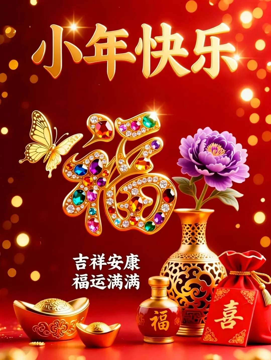 🧨㊗️🍀 小年到,祝福到,幸福快乐少不了!扫去烦恼阴霾,洗去岁月忧愁,迎接快乐进家门,吉祥开道常伴,欢乐高调随行,欢天喜地迎新春,祝福大家新的一年家庭幸福,万事如意。早安!🥳💝🧧