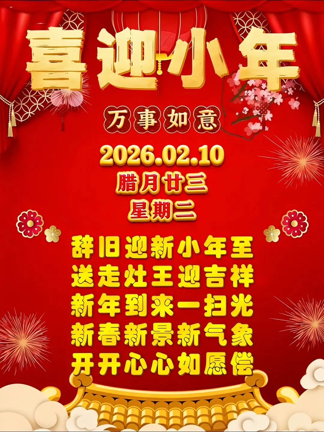 当前位置:首页>美女资讯>2月10日小年祝福图片,小年祝福语精选