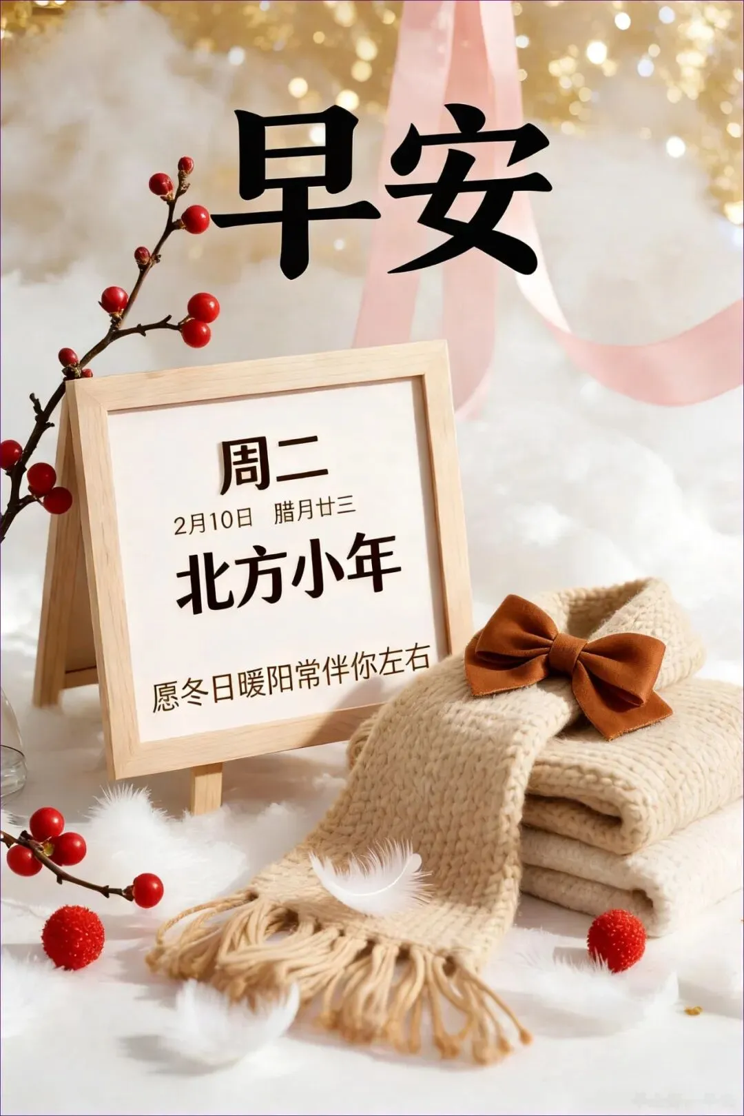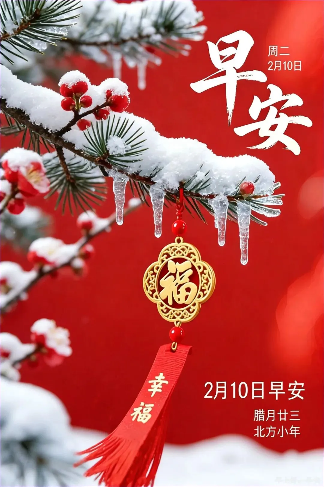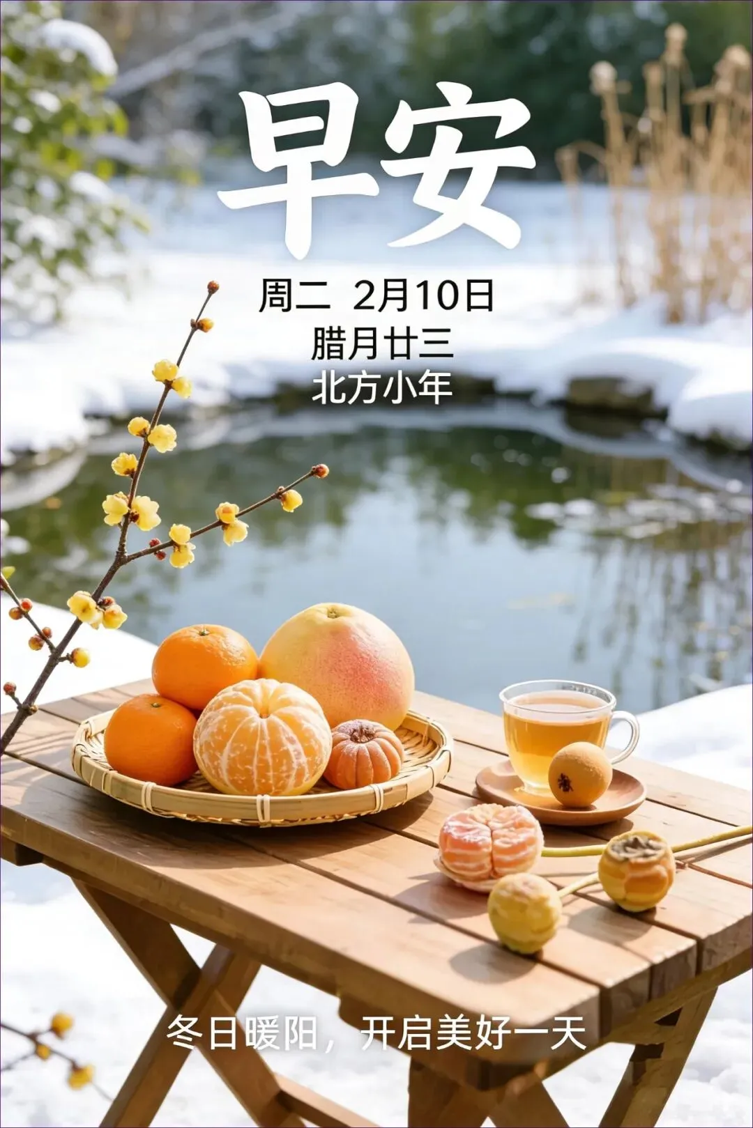 当前位置:首页>美女资讯>2月10日 早安图片 周二北方小年漂亮早安问候图片大全最新