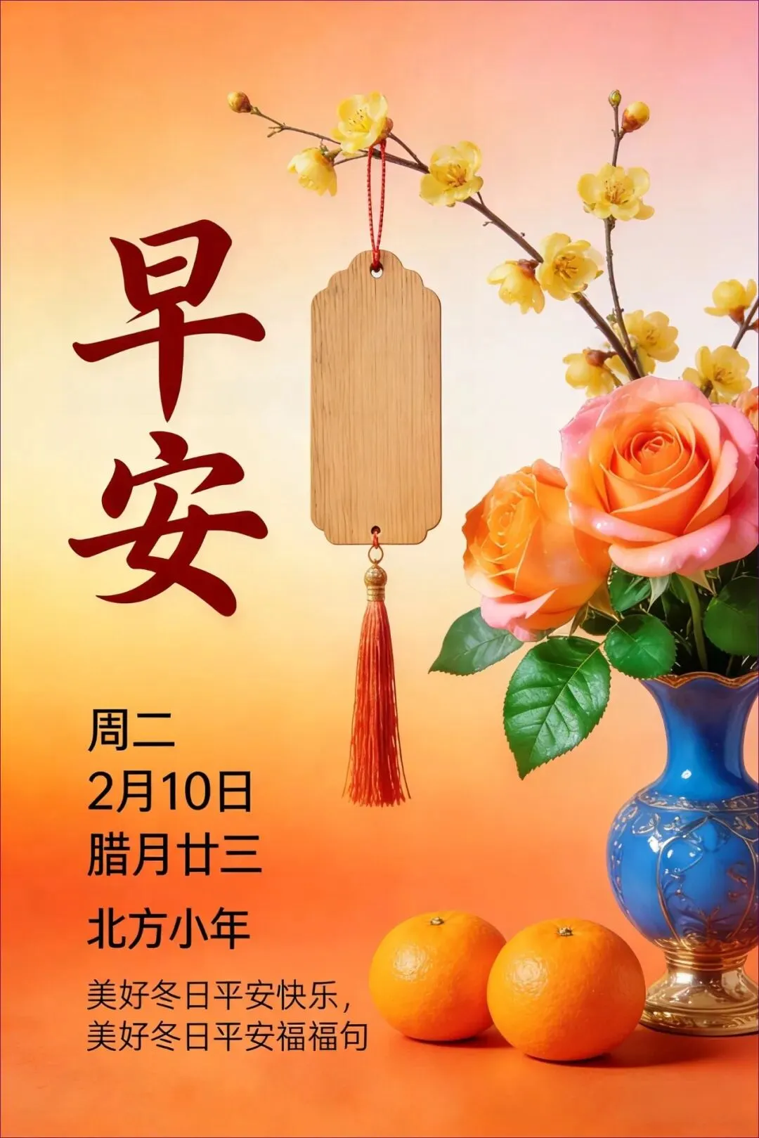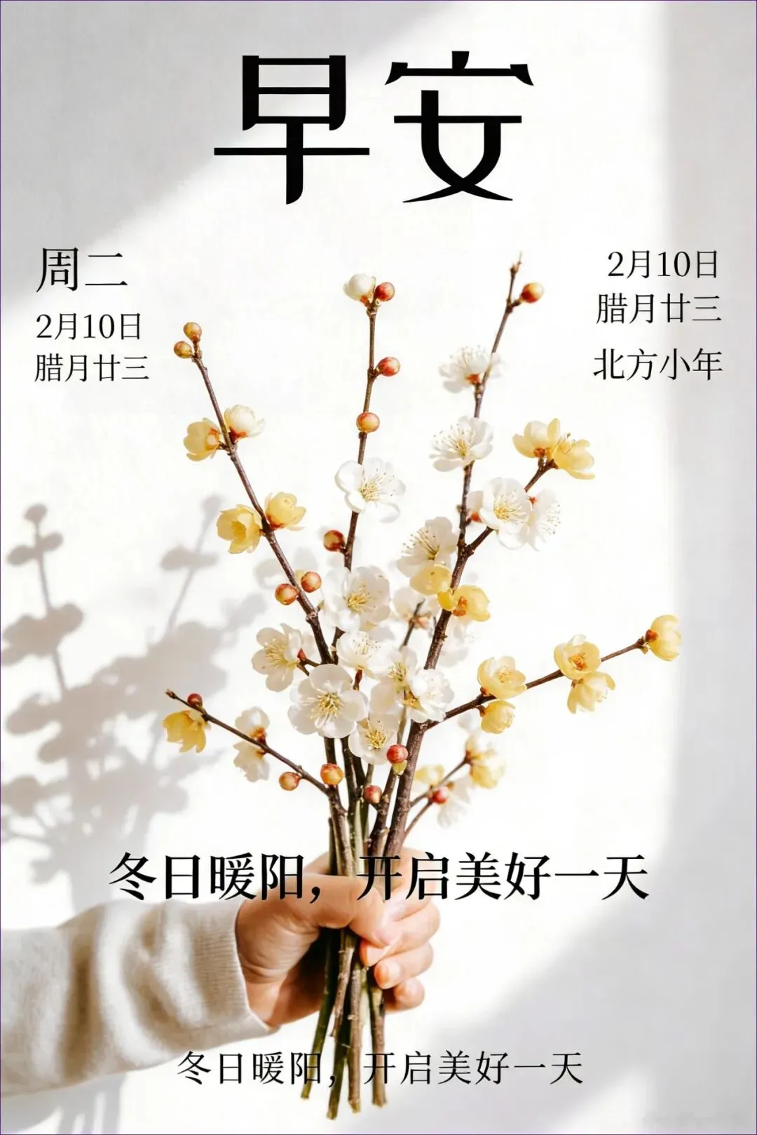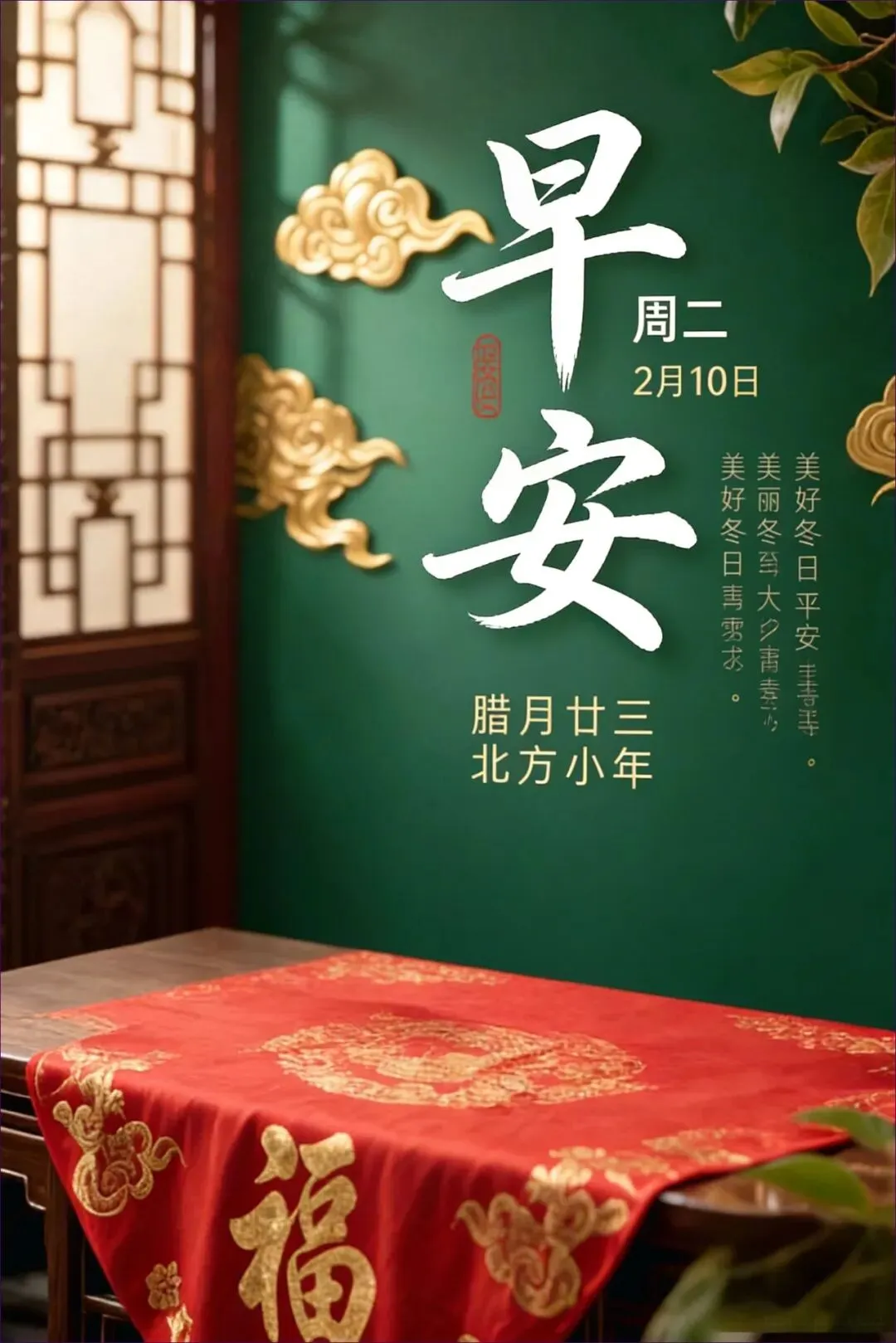 当前位置:首页>美女资讯>2月10日 早安图片 周二北方小年漂亮早安问候图片大全最新