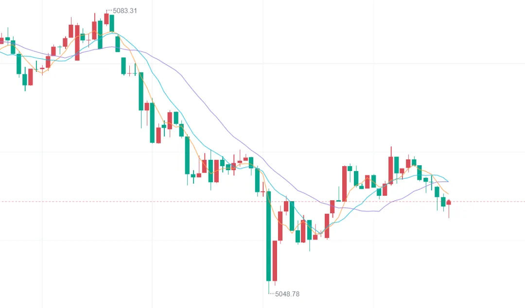 黄金:金价目前已稳稳站稳5000美元这一关键关口,短期回落至4800美元附近的区间仍被市场视为难得的买入机会,若后续能成功突破5100美元的压力位,下一目标将看向5400美元,中长期来看,金价甚至有望再度挑战5600美元附近的历史高点。金价仍有可能出现约300美元的剧烈回调,尽管这种回调不会改变整体上行趋势,但投资者仍需保持谨慎,避免过度追高。从短期交易层面来看,5分钟期金图表显示,当前金价的支撑位在4950至5000美元区间,压力位则在5050至5100美元区间。金价在触及日内高点后回落,目前正围绕5000美元整数关口展开争夺。关键的60周期简单移动平均线(60 SMA)目前位于5022美元附近,恰好构成上方的第一道技术阻力。金价未能有效站稳该均线上方,是短期动能可能有所减弱的信号。前期大幅上涨后,市场需要进行技术性整理以消化获利盘。布林带指标提供了价格波动范围和趋势状态的参考。目前,布林带中轨位于4922美元,构成下方的首要支撑区域;而上轨则位于5080美元附近,标志着近期的强势上边界。金价从靠近上轨的位置回落,表明短期超买压力得到一定释放。若市场转为震荡,价格可能向中轨区域寻求支撑。