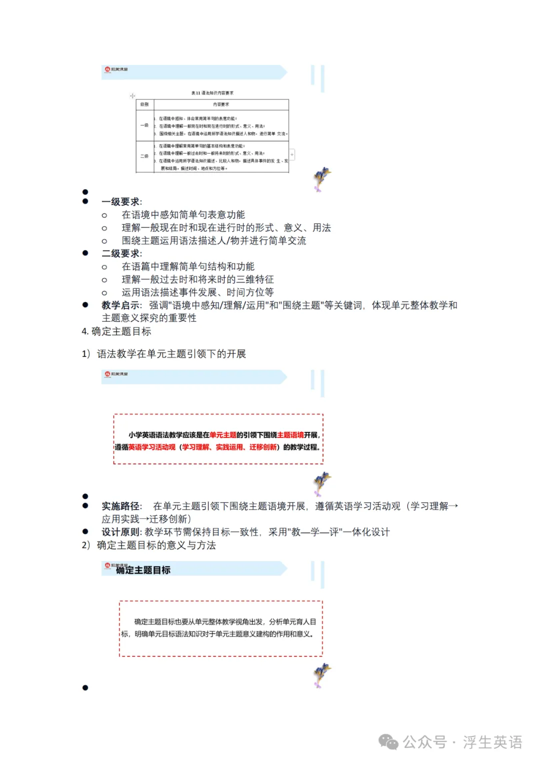 1.单元主题引领原则:语法教学需嵌入单元整体教学,明确其在主题探究中的功能与递进关系;