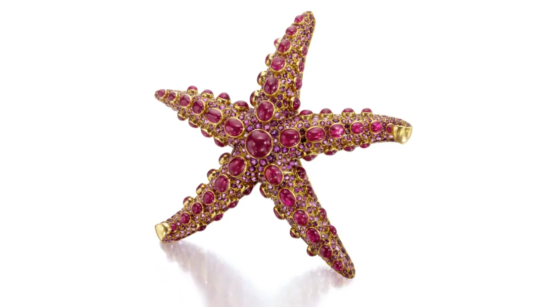 米莉森最具代表性的珠宝之一便是René Boivin设计的那枚著名的“starfish”胸针。该胸针于1936年制成,由Juliette Moutard设计,其灵感源自大自然的有机、雕塑般的形态,镶嵌着红宝石和钻石。