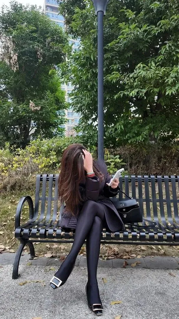 这套.打扮最.加分的是.腰带。.美女.在羽绒.服外面系了.条同色系的.宽腰带.,还.系成蝴.蝶结。一.下子就.把腰线拉.高了,.整个人看.起来.挺拔不少。.长款.羽绒.服容.易压个子.,加上腰带.就好多了.。手.里拎个.黑色.包包,包.扣是.金属的,.质感立马提.升。背.景是公园,.落叶满地,.和羽绒服.的颜.色呼.应,.氛围.感拉.满。