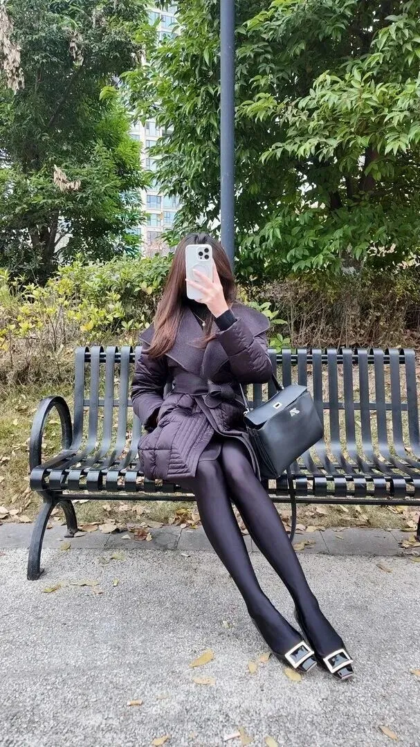 要是你.觉得.长款不够.利落.,短款可.以试试.。短.羽绒服.更显.精神,衣.摆是.收口.的,不会显.得臃.肿。深紫色.短款配.上黑.色紧身裤.袜,.腿型.勾勒得清.清楚楚。.冬天这.么穿,保暖.和好看兼得.。坐着.的时.候腿交叉放.,那.种随性.的味道就出.来了。手机.随手.拿,包包放.一边,日.常出门这样.穿,方.便又时髦.