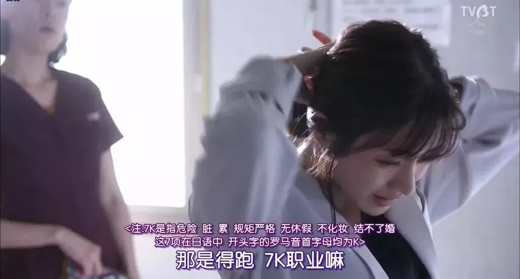 这里的7K,指的是危险规矩严格无休假不化妆结不了婚(日语中,这七个词开头的罗马音首字母都是K)。