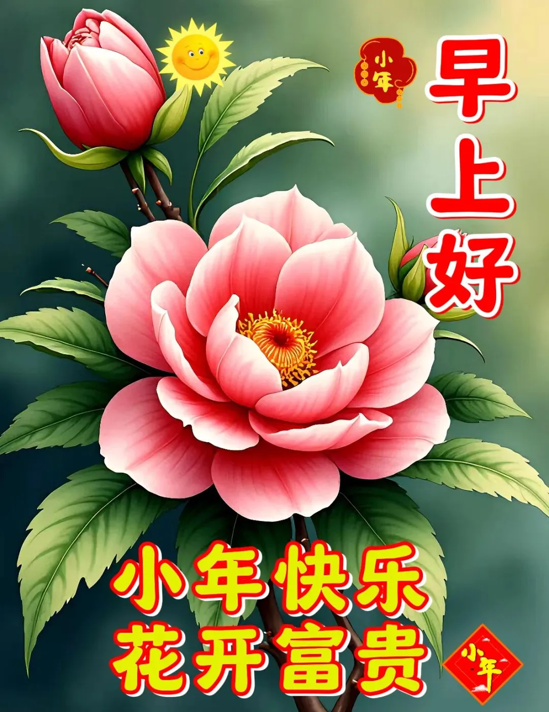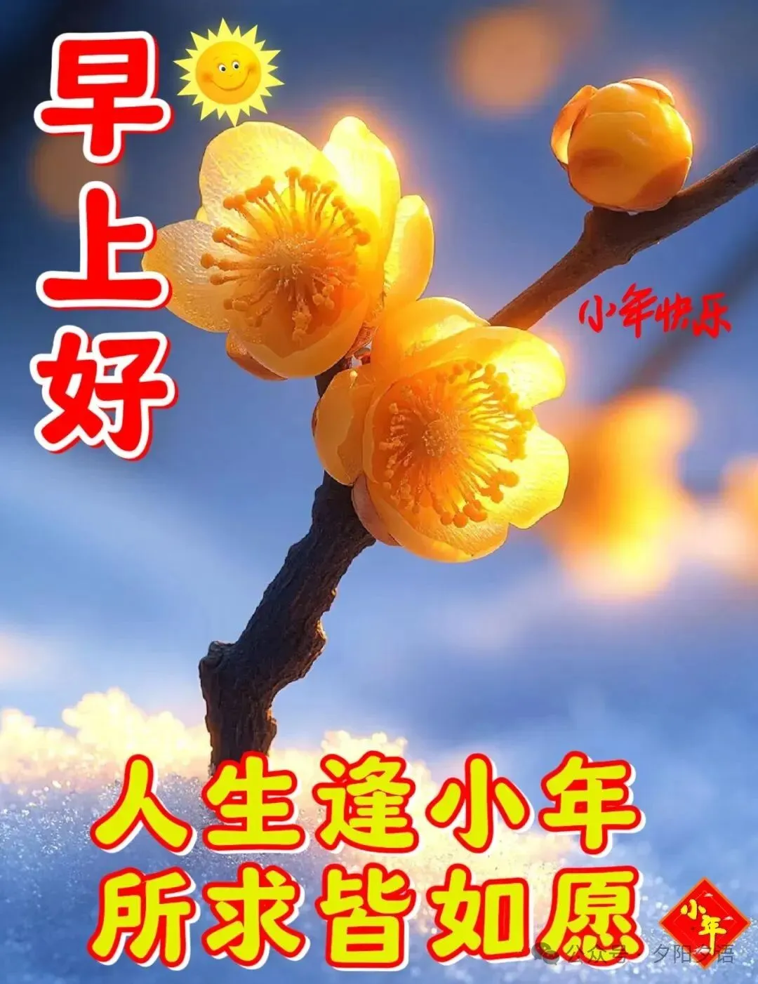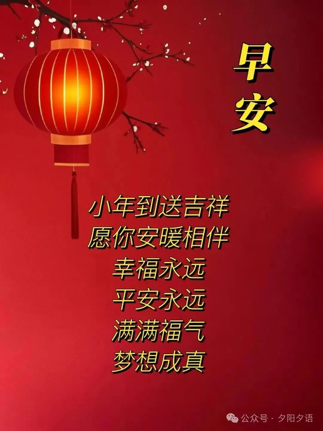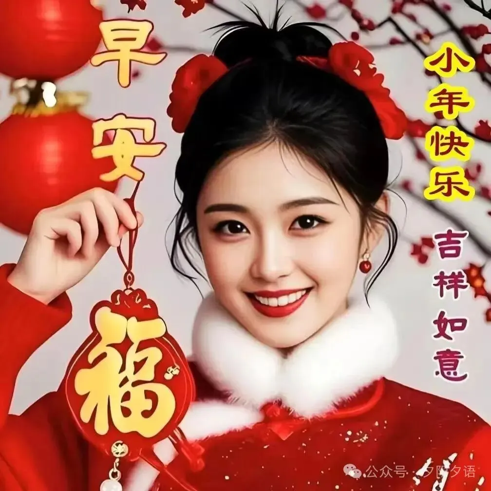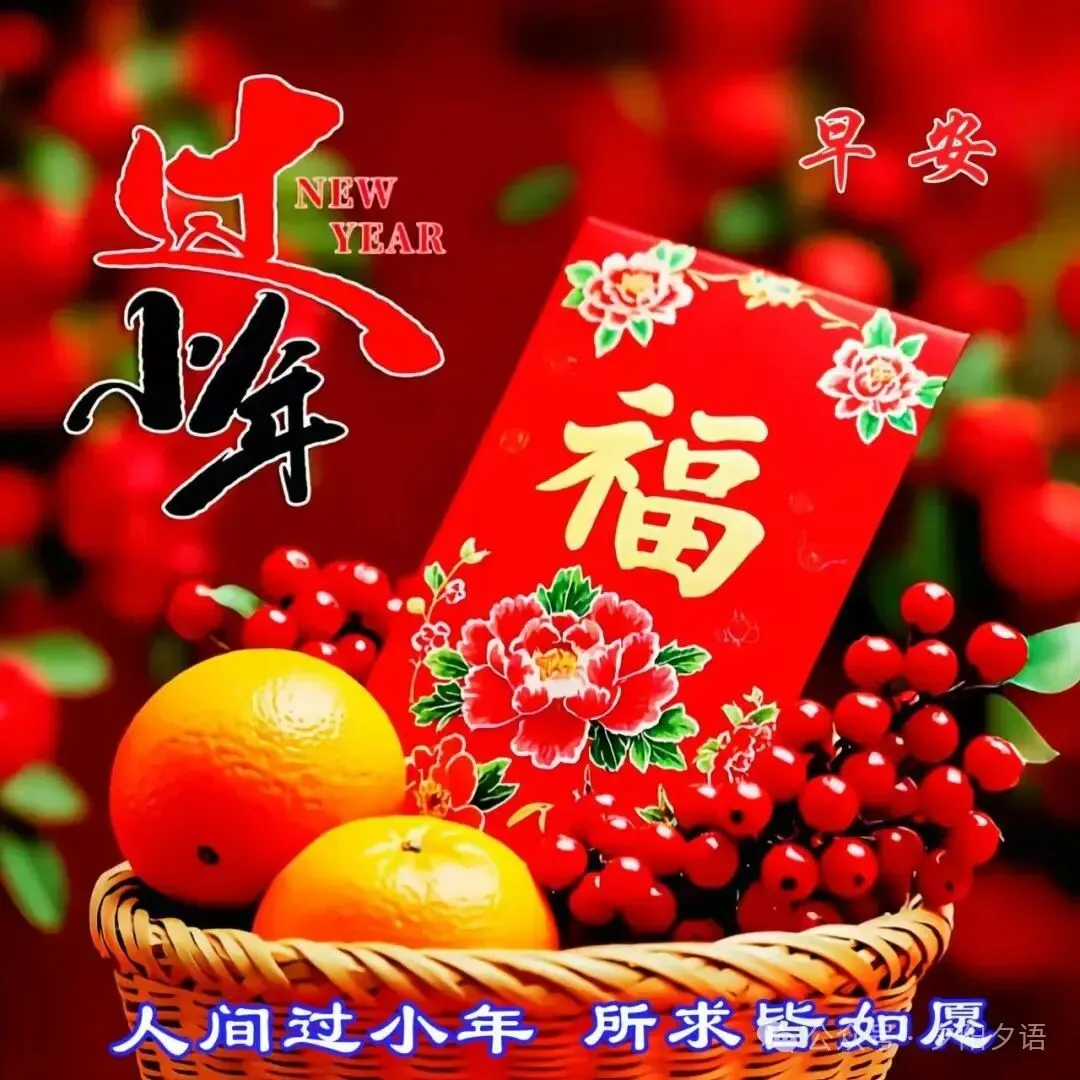 ❤️😊🍎🎉今日小年喜临门,红火鞭炮声喧响,团圆饺子店里香,合家欢庆笑声长,愿你幸福似花香,吉祥如意紧相随。-早安,小年大吉!