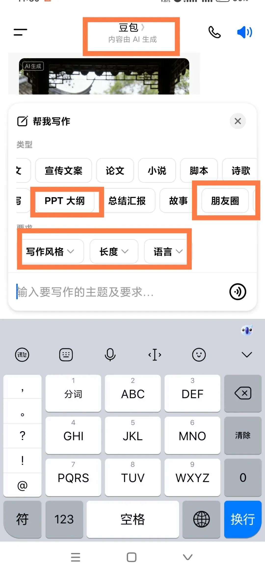 更绝的是,还能根据上面的图片,写出朋友圈文案,下面给你看一下豆包入口在哪里?