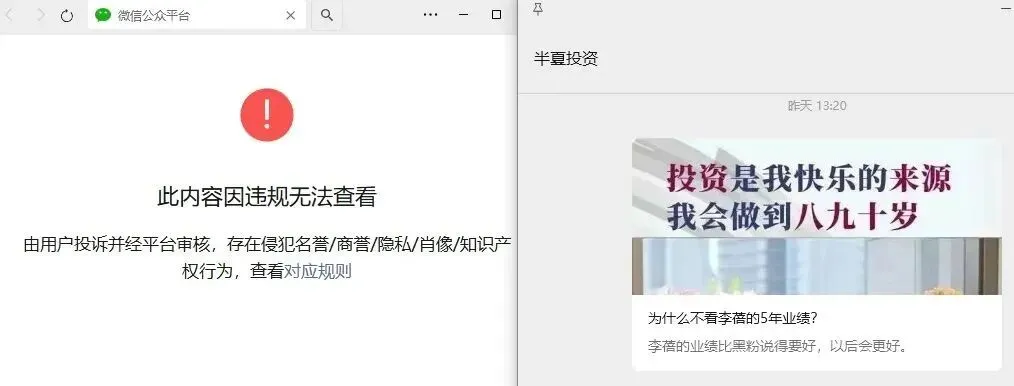 据了解,在这篇名为《为什么不看李蓓的5年业绩?》的文章中,创始人李蓓直接怒怼其前夫、同为私募基金经理的梁文涛。需指出的是,29日晚间,相关文章已显示“此内容因违规无法查看”。