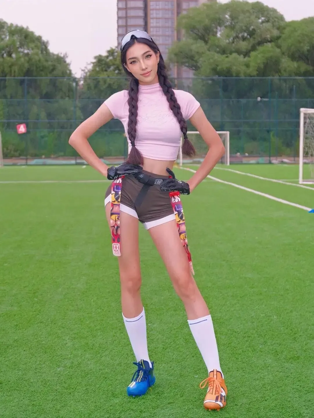 收工的时候已经是傍晚,她抱着打印好的样片坐在沙发上笑,指尖划过照片上自己的脸,“你拍得比我想象中还要好。”她起身拿起搭在椅背上的牛仔外套,套在吊带外面,露出的肩膀在夕阳下泛着暖光。“下周我要去海边,”她走到门口,突然回头,对着我抛了个媚眼,梨涡陷得更深,“要不要一起去?拍一组海边的黑皮辣妹写真,我请你吃海鲜。”我看着她转身时晃动的马尾,还有外套下摆露出的纤细腰肢,喉结又滚了滚,刚要开口答应,她已经挥着手跑了出去,高跟鞋踩在走廊上的声音清脆响亮。我走到窗边,看着她钻进一辆红色的小跑车,车窗摇下来,她对着我比了个心,然后扬长而去。风从窗外吹进来,带着她留下的椰子香,我低头看着手里还带着她温度的可乐罐,忍不住笑了。