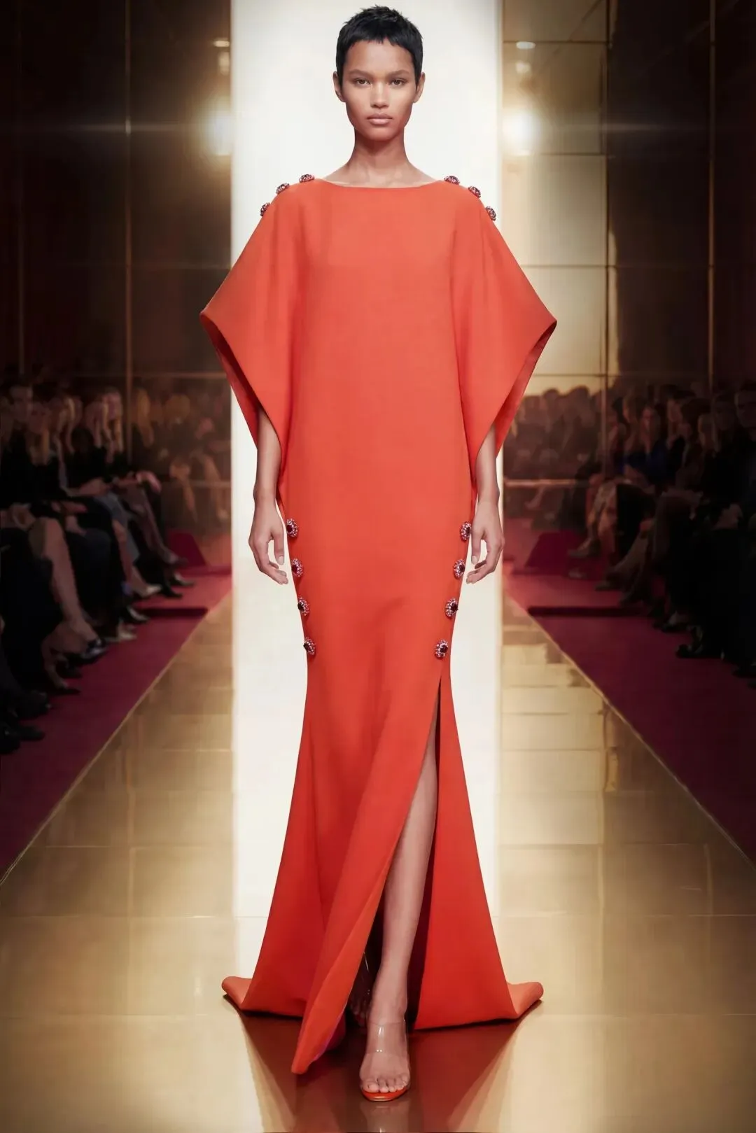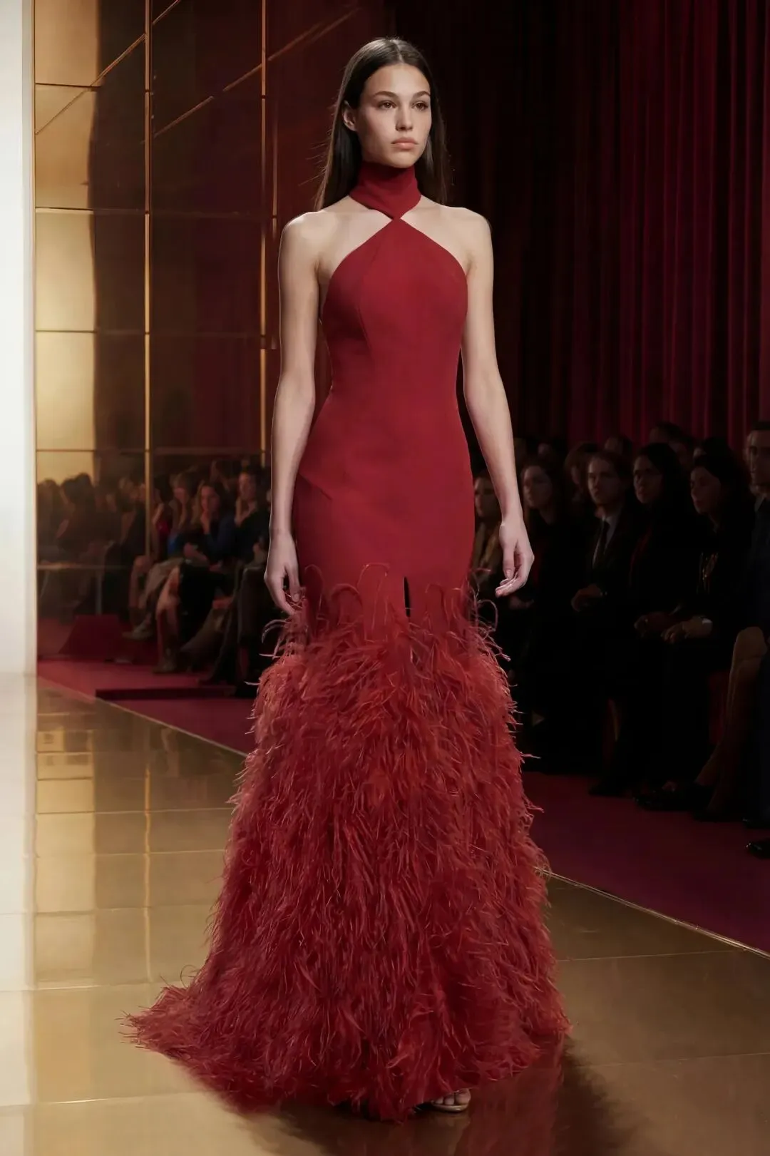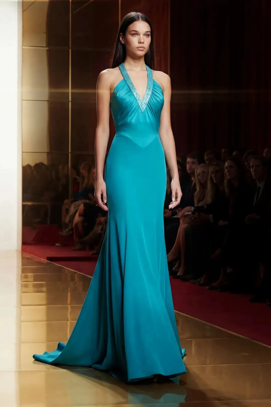 设计师与法国Glor'IA工作室合作,耗时五个月训练AI模型。他们以胚布样衣扫描、面料肌理数据为“教材”,让AI理解高定面料的垂坠感与动态细节。例如,一件珊瑚色长袍的褶皱需模拟绉绸的流动性,而模特的波浪卷发需通过算法模拟真实发丝的摆动轨迹。过程中,一个廓形可能经历300次迭代才能达到预期效果。