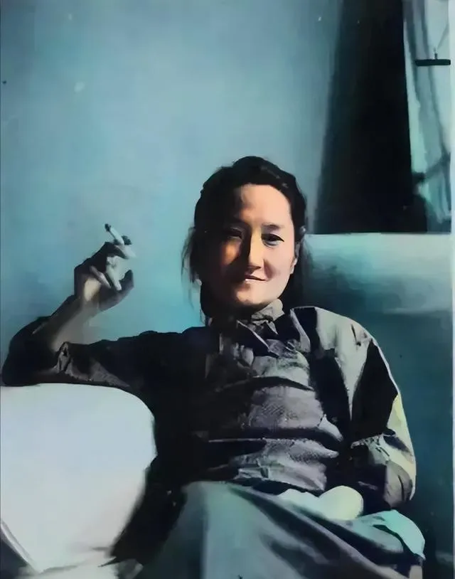 这幅坐沙发的私照,最扎眼的是手里那根烟,靠枕陷下去,她半斜着身,笑意有点松,屋里光冷,墙面是蓝灰色,她像刚从疼里松一口气,又马上要去找下一口凉快。