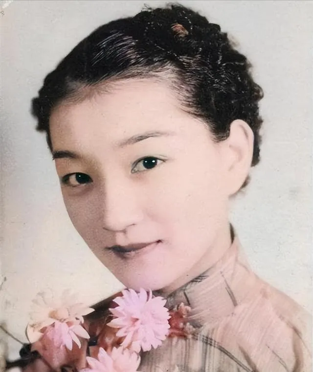 这幅偏素的肖像,背后斜插着几枝粉花,肌理被老相纸磨得细腻,她把下巴微微抬起,像要把一口气咽回去,别让人看见自己的心事,年轻就有年轻的倔。