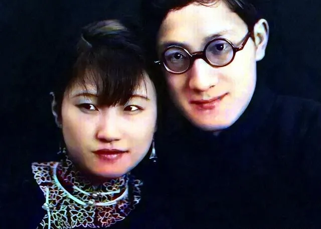 最后这张并肩的特写,靠得很近,灯光把两人的侧脸都擦亮了,花纹立领衫把她的颈子衬得修长,他的圆框眼镜在镜头里反了点光,甜的时候是真的甜,可惜人生不只甜,也有疼。