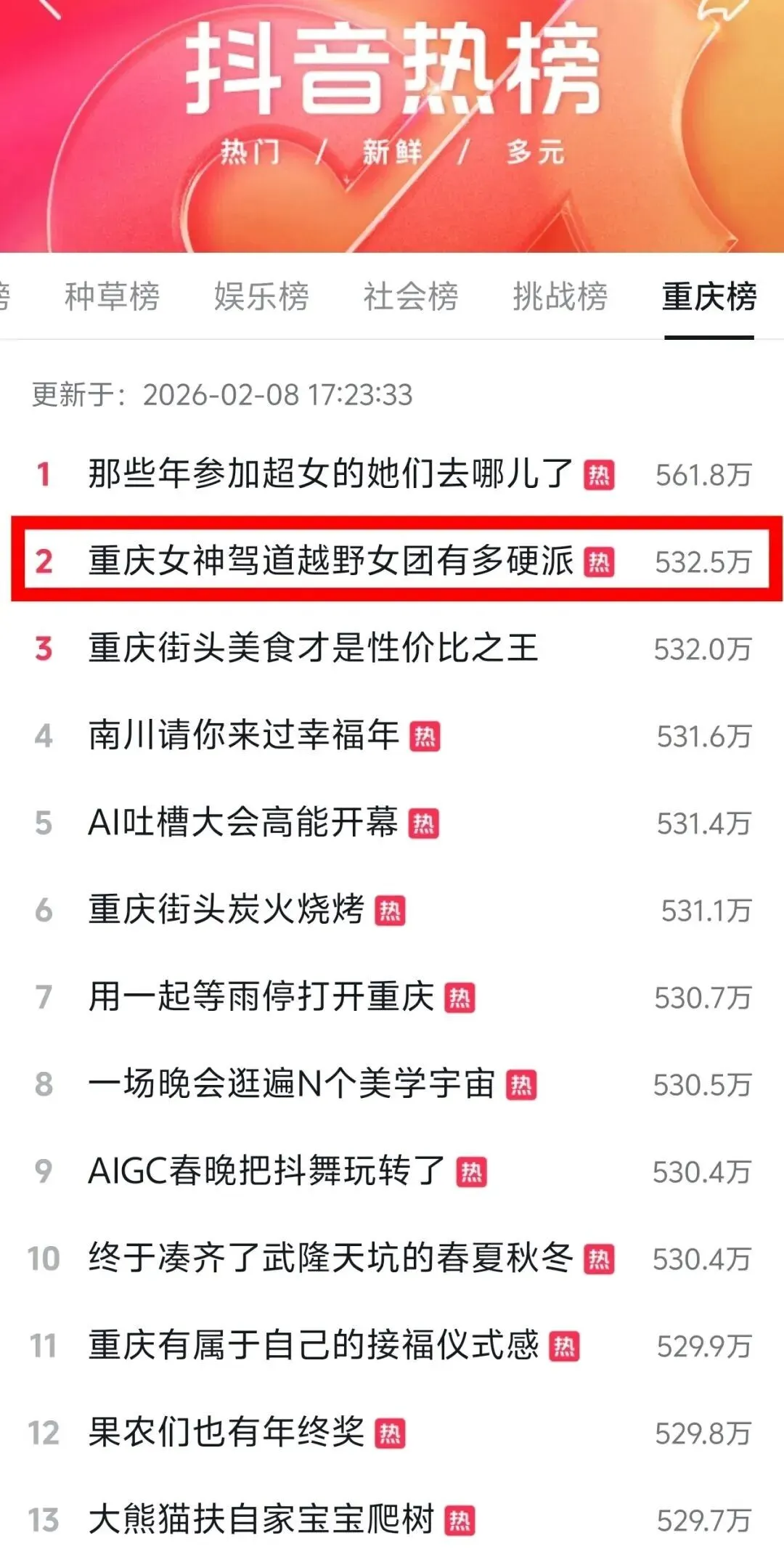 当前位置:首页>美女资讯>登上抖音热榜!《女神驾道》首场海选嗨翻了