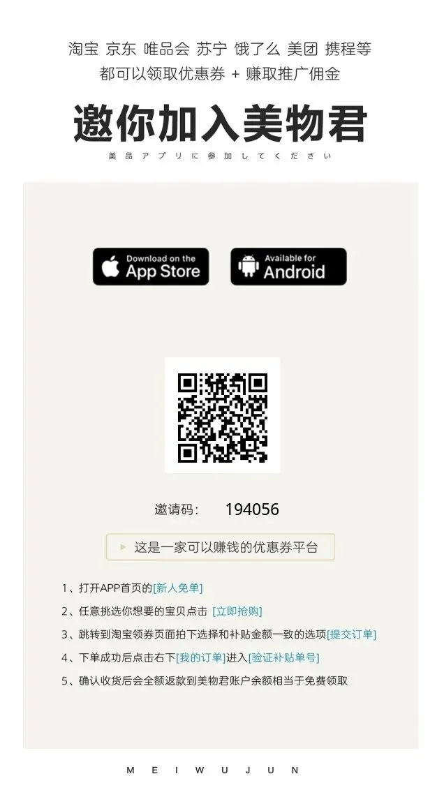 注释:感兴趣的姐妹可以自行下载美物君APP,输入邀请码194056,没有邀请码是无法使用的。也可以找我要教程玩法~