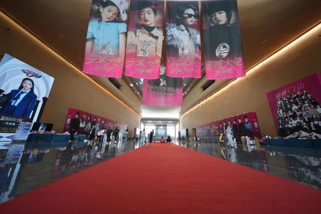 东门广场的道旗开始,盛会氛围已然弥漫。步入中央船厅,赛事充分利用挑高空间及建筑特点进行布置,设置巨型主题展板、从二楼及四楼空中连廊垂下的巨幅垂布,形成强烈的视觉震撼。连接东门大楼梯与中央船厅的动线,化身为气派非凡的超长荣耀红毯,成为选手们闪亮登场的第一舞台。